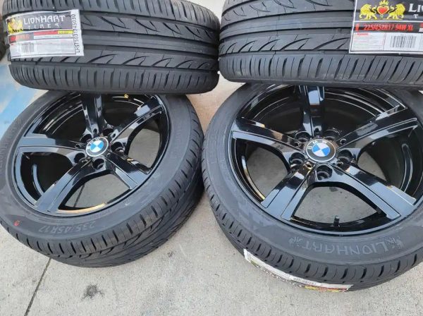 Set of 4 – Brand New 17″ Gloss Black Wheels & Tires for BMW 325i