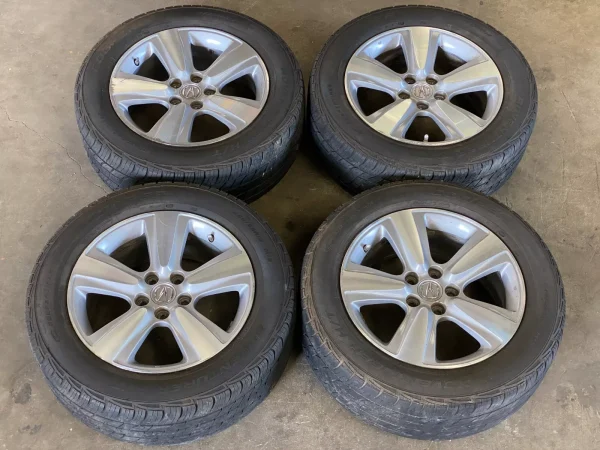 This is a set of 4 genuine OEM Acura 18×8″ wheels, finished in black and removed from a 2011 Acura MDX. These used wheels are in good working condition with signs of normal wear.